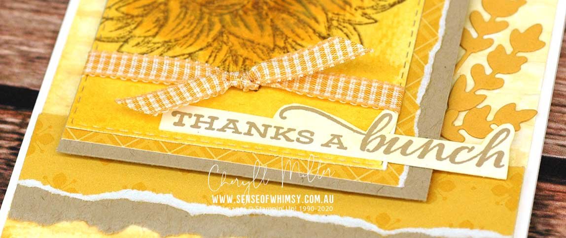 Love, LOVE, L O V E!!!!!! This is truly amazing as always… you never cease to amaze me with your creativity, Cheryll! Love all the yellows with the touch of Crumb Cake. The torn edges tugged at my heart… love this technique. As always thanks for the inspiration and for hopping with us! xx