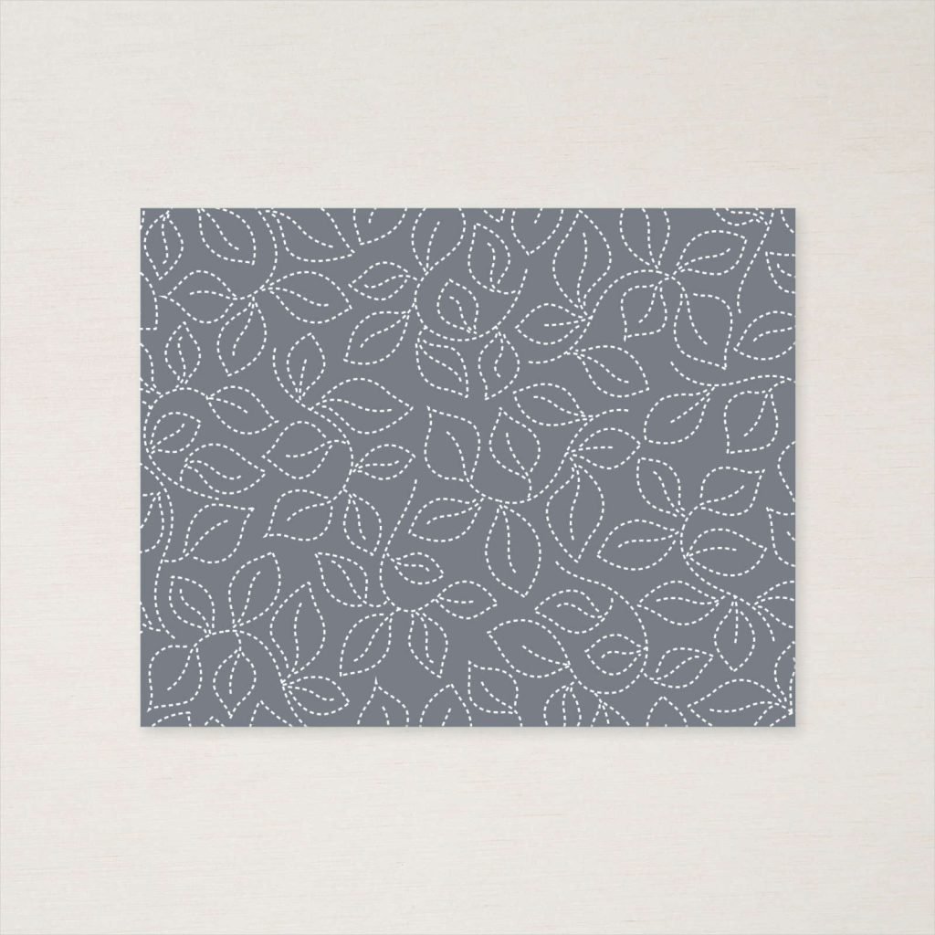 - The textural stamps from the Quiet Meadow stamp set are stamped onto the Basic White panel with Smoky Slate ink (stamped off to keep the images quite light).