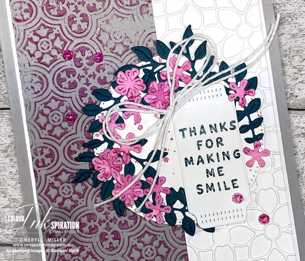 The Distressed Tile 3D Embossing Folder is one of my absolute favourites. Today I have combined it with the Petal Patterns Dies, the Lovely and Sweet Dies, the Notes of Nature Dies and the Notes of Nature Stamp Set for my project for the Colour Inkspiration Colour Challenge #159.