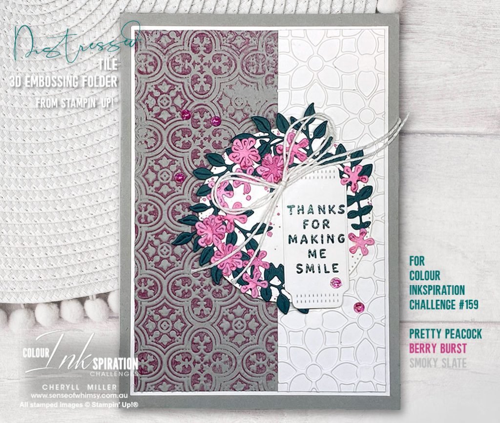 Distressed Tiles 3D Embossing Folder for Colour INKspiration Challenge #159