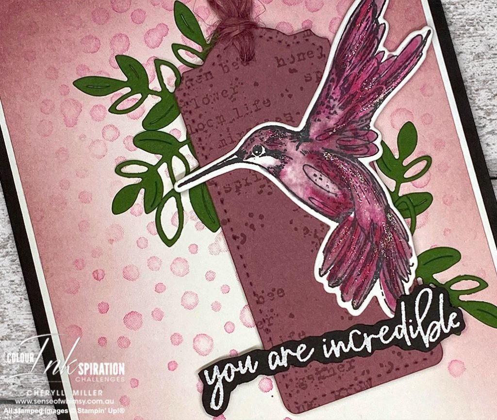 I love how you’ve combined the blending with your new background stamp Cheryll. It is so effective and really makes it look like your hummingbird is hovering, just like they do in real life. Love this card!