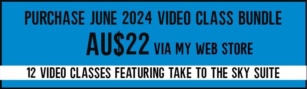 This hop introduces you to the Video Class Bundle featuring the Take to the Sky suite of products. Each month, 12 amazing designers prepare a video class featuring a different suite of products from the current Stampin’ Up! range, including a PDF with full supplies list and measurements in both Metric and Imperial. Scroll down for options for getting your hands on this bundle. My lovely customers purchasing in June get this class bundle for free as a thank you gift, as do my amazing team members.