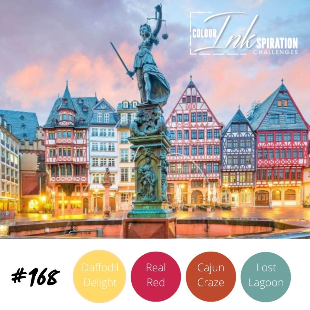 Welcome to my blog. Today’s post is for Colour INKspirations Colour Challenge #168. Our inspiration pic for this challenge was chosen by design team member, Bernie Roodt. The colours are Daffodil Delight, Real Red, Cajun Craze and Lost Lagoon. Our guest designer for this challenge is the fabulous Sharon Dalton.