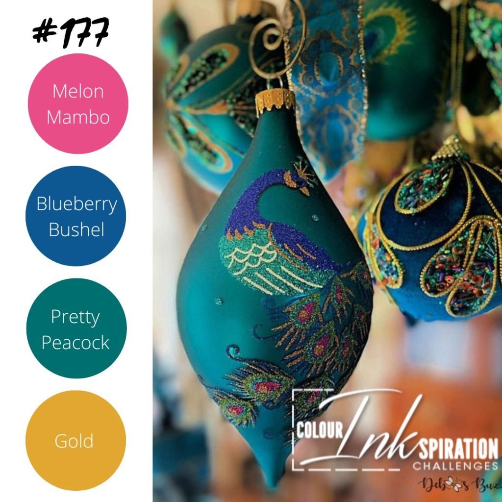 Why don’t you join in the challenge with us? Create a card for the challenge using all four colours – Melon Mambo, Blueberry Bushel, Pretty Peacock and Gold, you may also add Basic White, Very Vanilla, Crumb Cake, Basic Beige, Basic Black and metallics to your project. We also allow ‘Ivory’, ‘Bronze’ and ‘Natural Tones’ in the Stampin’ Blends. If you don’t have the colours in our palette, feel free to use the closest Stampin’ Up! (or any other brand) substitute – Berry Burst instead of Melon Mambo for example. Then upload it to the Facebook group here.