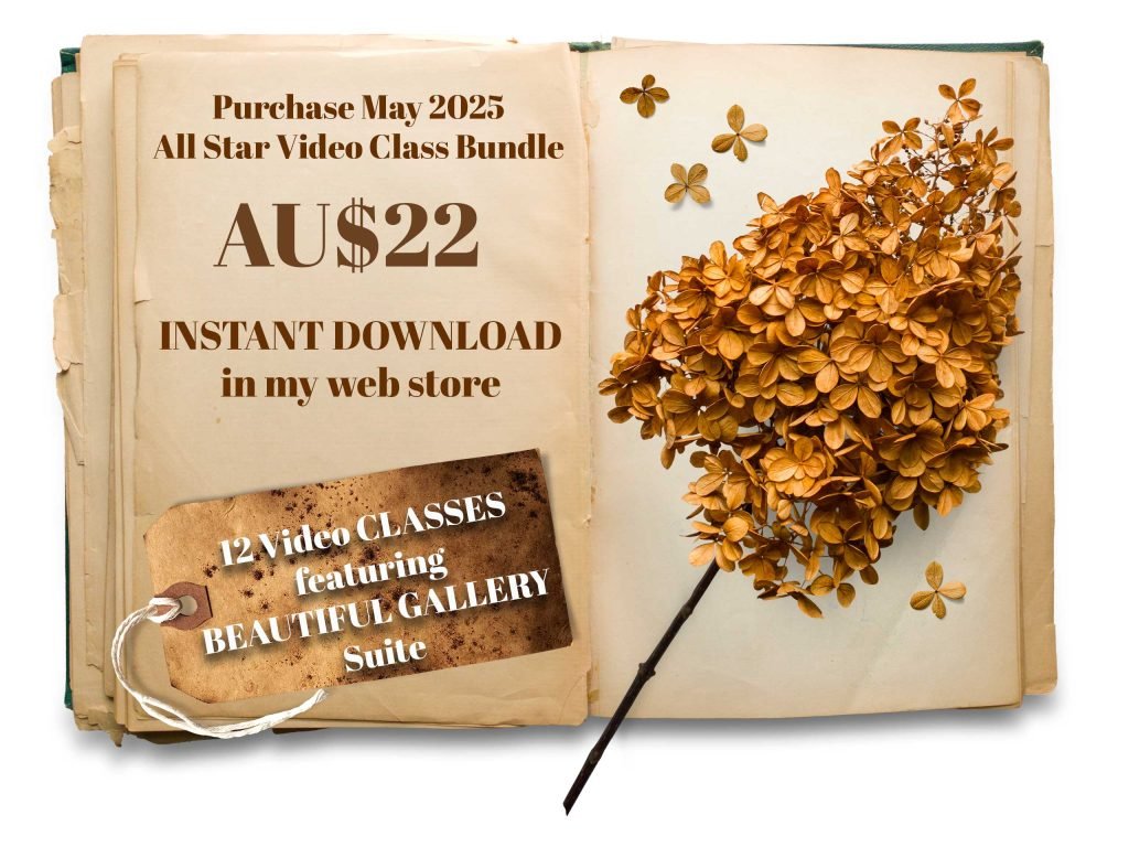 This hop introduces you to the Video Class Bundle featuring the Beautiful Gallery suite of products. Each month, 12 amazing designers prepare a video class featuring a different suite of products from the current Stampin’ Up! range, including a PDF with full supplies list and measurements in both Metric and Imperial. Scroll down for options for getting your hands on this bundle. My lovely customers purchasing in May get this class bundle for free as a thank you gift, as do my amazing team members.