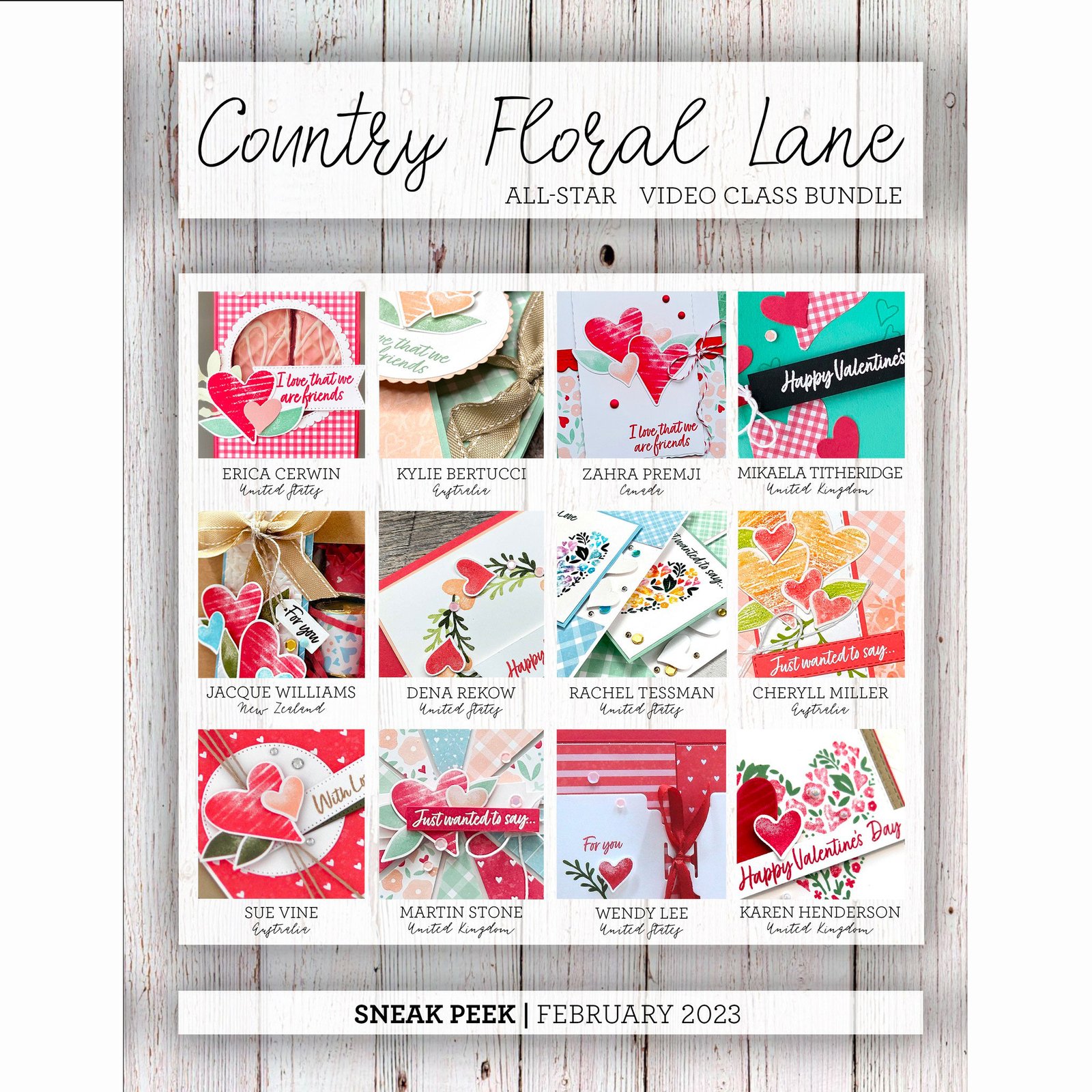 This bundle of 12 class videos is created by the All Star Video Class Bundle Design Team and each class uses product from the Country Lane Floral Suite of products featured in the Stampin’ Up! Jan-Apr 2023 Mini Catalogue.