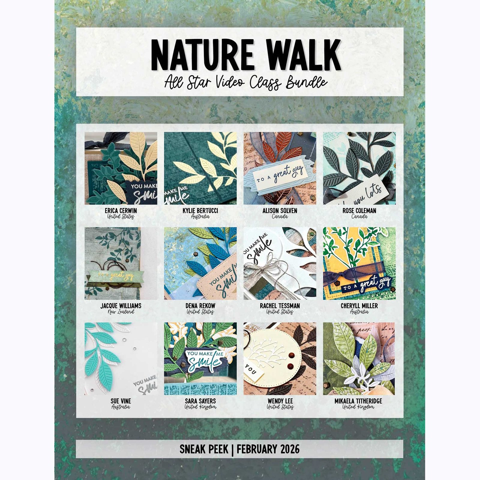 This bundle of 12 class videos is created by the All Star Video Class Bundle Design Team and each class uses product from the Nature Walk Suite of products, released in the Jan – Apr 2026 Mini Catalogue from Stampin’ Up!®. All 12 classes include a PDF with both Metric and Imperial (inches) measurements and full product lists so that you can use these wonderful EXCLUSIVE projects no matter where in the world you are. With all projects exclusive to this Video Class bundle, you won’t see them anywhere else.  Demonstrators, these projects are great to use in your classes.