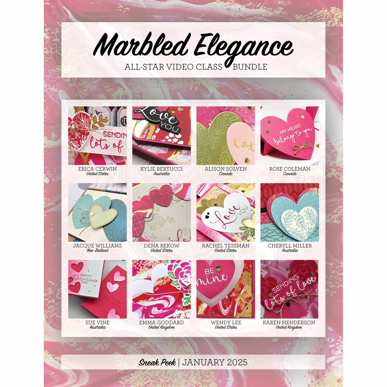 This bundle of 12 class videos is created by the All Star Video Class Bundle Design Team and each class uses product from the Marbled Elegance Suite of products featured in the Stampin’ Up! Online Exclusives offering. All 12 classes include a PDF with both Metric and Imperial (inches) measurements and full product lists so that you can use these wonderful EXCLUSIVE projects no matter where in the world you are. With all projects exclusive to this Video Class bundle, you won’t see them anywhere else. Demonstrators, these projects are great to use in your classes.