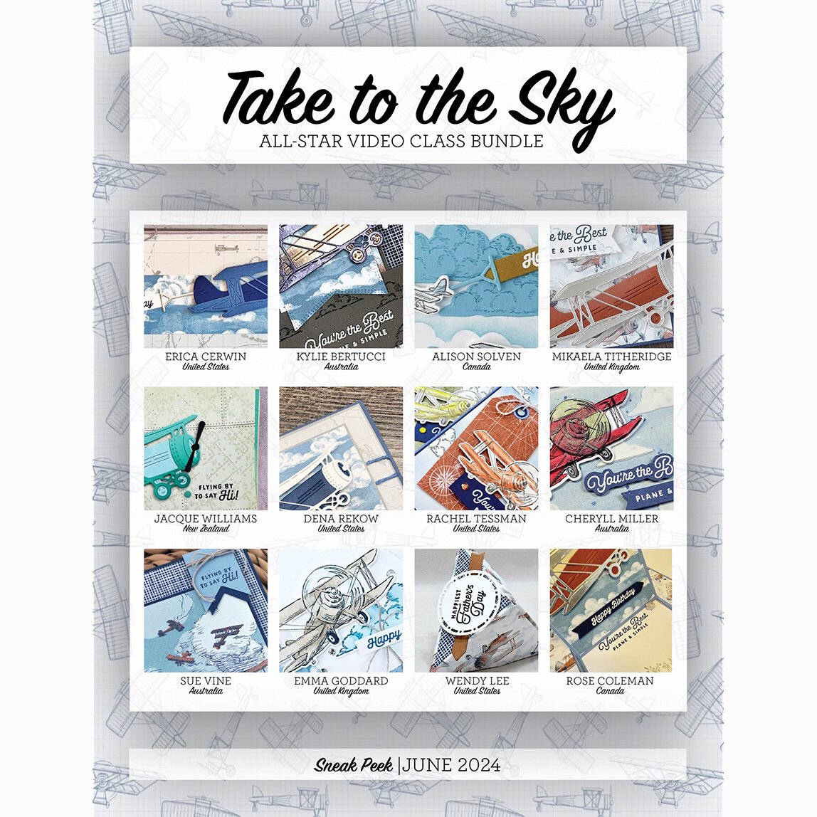 This bundle of 12 class videos is created by the All Star Video Class Bundle Design Team and each class uses product from the Take to the Sky Suite of products featured in the Stampin’ Up! 2024-2025 Annual Catalogue